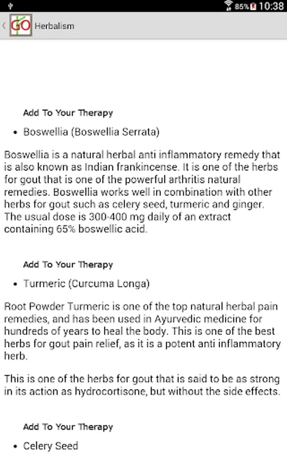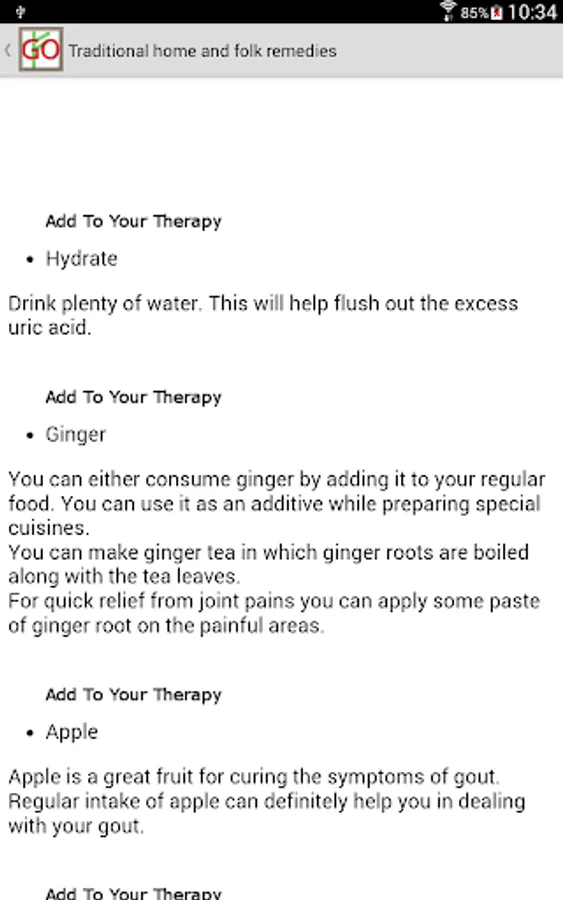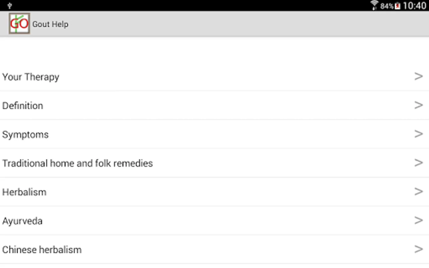 With this app, we have compiled ancient gout remedies. We give you only the successful gout treatment. Here is the table of contents: