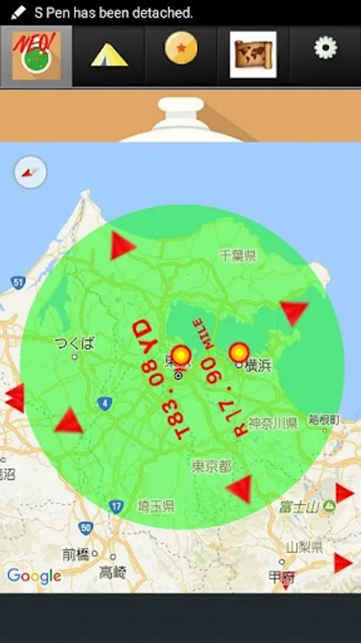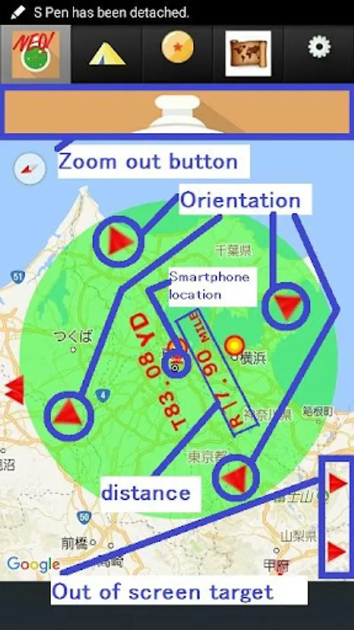 Once registered the target point from the other screen, is the corresponding location point on the screen, it will be such that the distance between the current of his own with a number above is updated display.