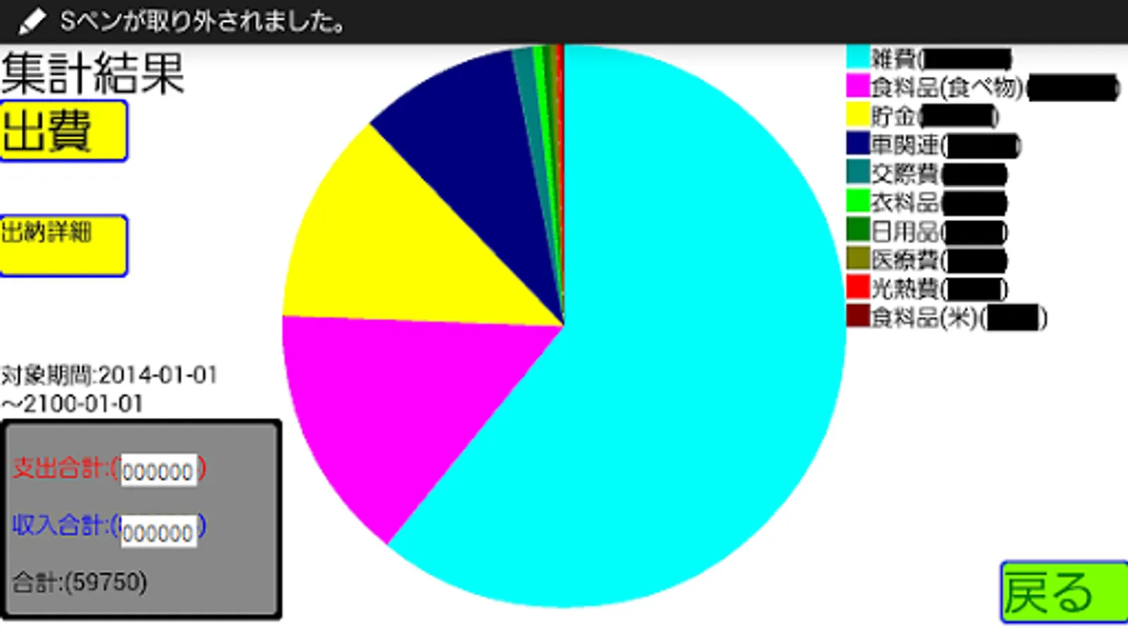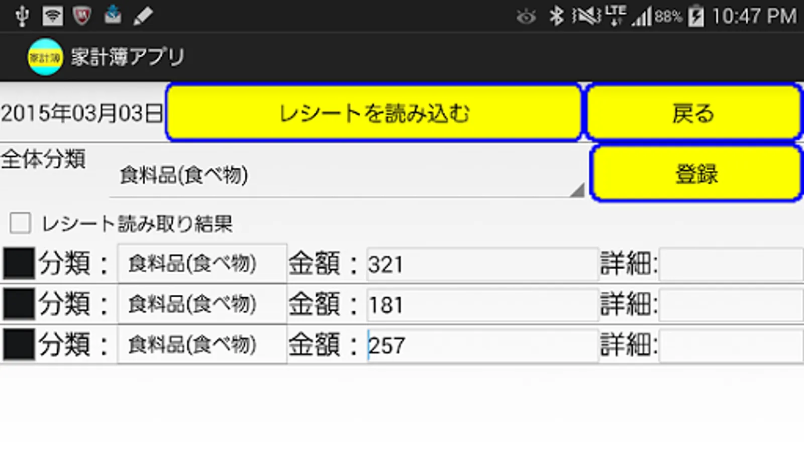 ⇒ input screen out teeth [spending] / [revenue] Roh character wo pressed de division wo switching trout.