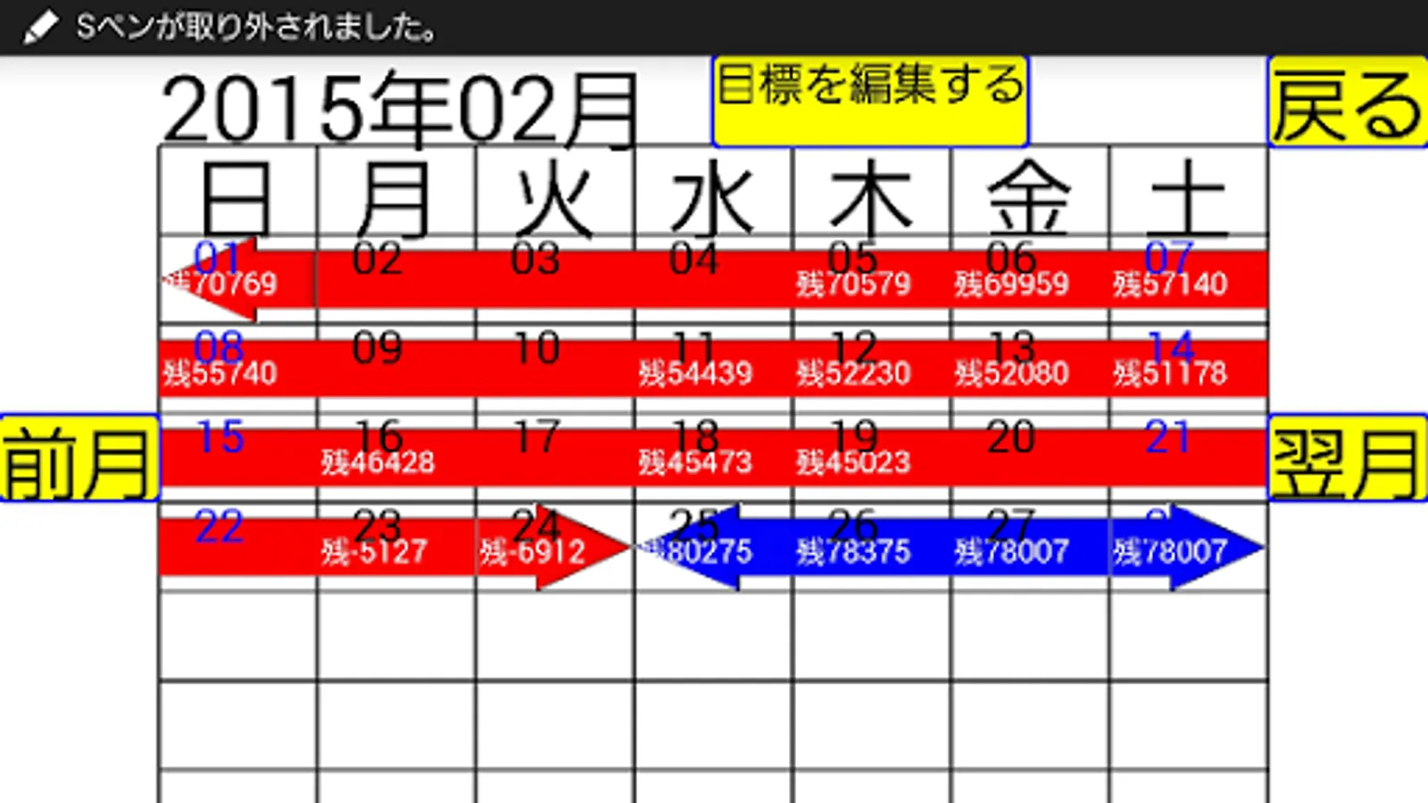 ⇒ first, you can see the blue arrow, but you will decrease the balance in time to spend money every day.
