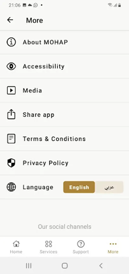 MOHAP App gives access to e-services, follow up application status and reduce the customer inconvenience which may be caused by physical visits to service centers. Moreover the app facilitates towards reduction of paper usage. The application now also allows to register as Organ Donors under the UAE Organ Donation program "Hayat". It also serves as an educational source by providing valuable information on a variety of health topics thus raising health awareness. The application is both available in English and Arabic and enable end-users and customers to access MOHAPs social media and other service channels such as live Chabot. MOHAP continually seeks to serve its customers at their own convenience through various digital service channels.