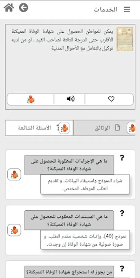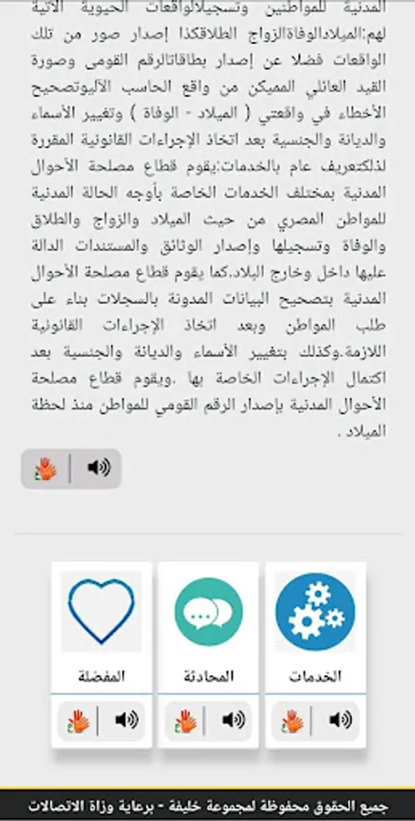 This application helps persons with disabilities to learn about the services provided by government agencies to citizens and the procedures for obtaining every service and documents required for them in addition to common questions