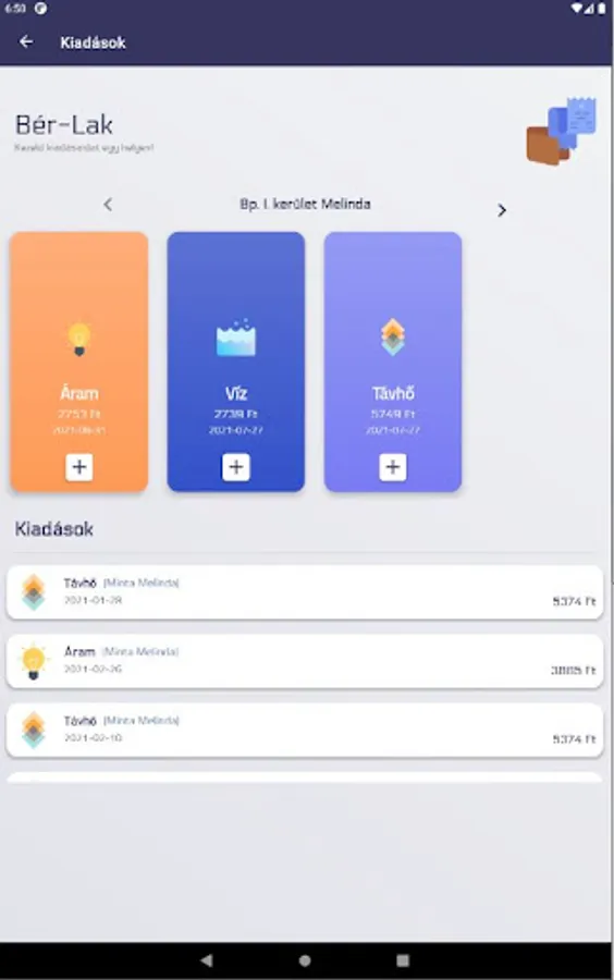 • With the help of the Bér-Lak application, you can see it separately for each property and utility service provider