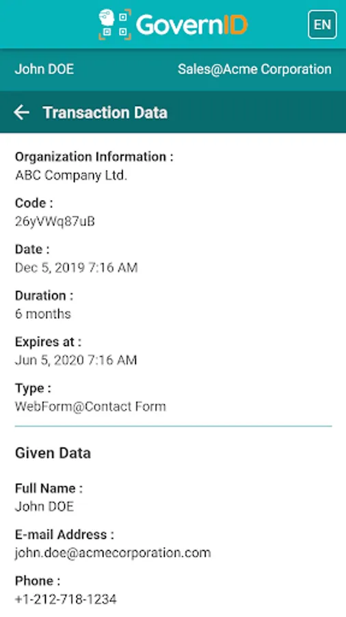 When as an individual you have to give your personal details (eg: name, surname, email, phone number etc.) into a web form integrated with GovernID, then your data protection will be handled by GovernID. You can track when and where you've given your private data.
