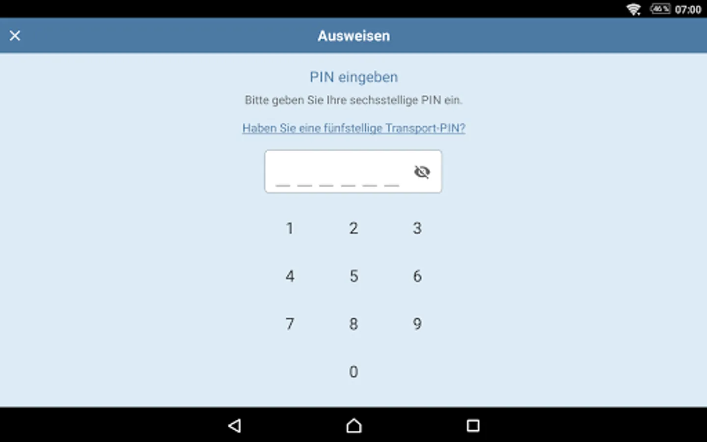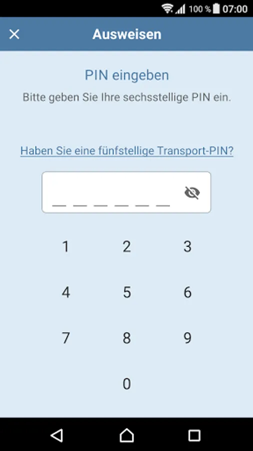 After receiving your ID card, change the transport PIN to a personal PIN using the AusweisApp2's PIN modification feature.