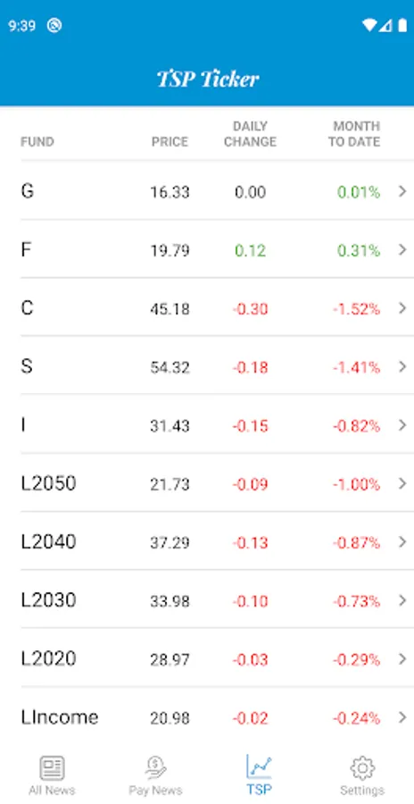 · Get daily updates on all of your TSP funds