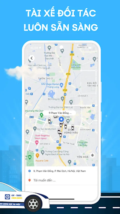 With GV's mobile application, you can easily book a go car, go taxi, go bike in Hanoi and Ho Chi Minh City as well as other provinces across the country in the most convenient way at an affordable price. . Whether you need to get to the Airport for a flight or commute to work every day, day or night, you can always book a car and ensure a safe ride along the way.