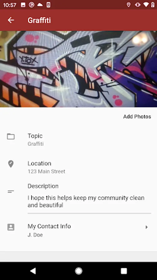 Just open the app, select your issue, and take a picture – the app knows the location and who can fix it for you!