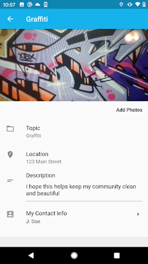 Report issues to public works. Just open the app, select your issue and take a picture - the app will know the location and who will address the issue for you.
