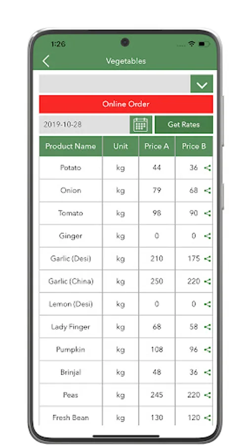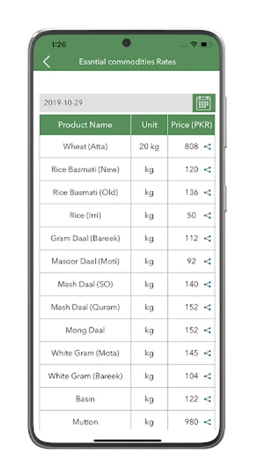 • App provide rates against four main categories ,i.e Essential Commodities, Fruits, Vegetables and Poultry Items.