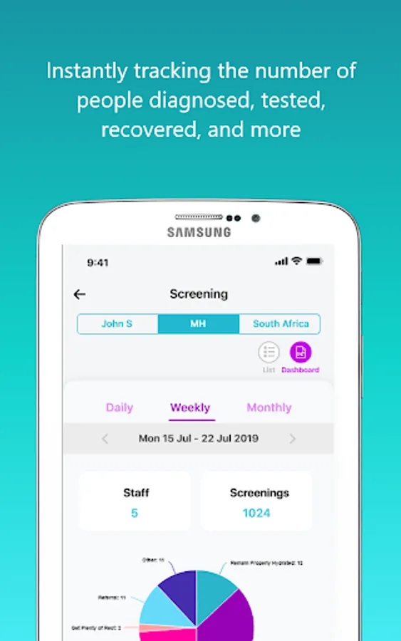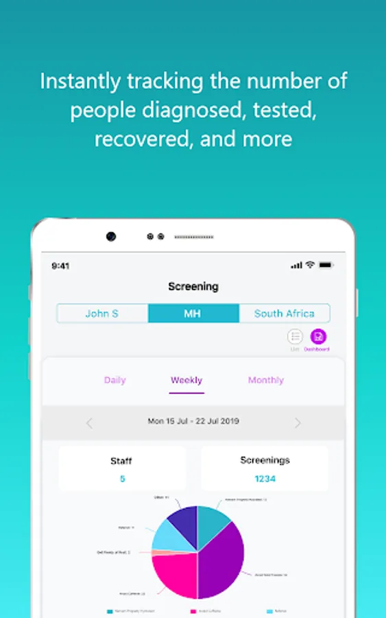 It also helps staff working in managerial capacities to keep track of the patient’s condition, have access to categorical information, check availability of healthcare workers, and see local trends and analysis.