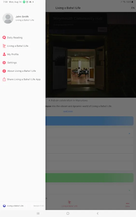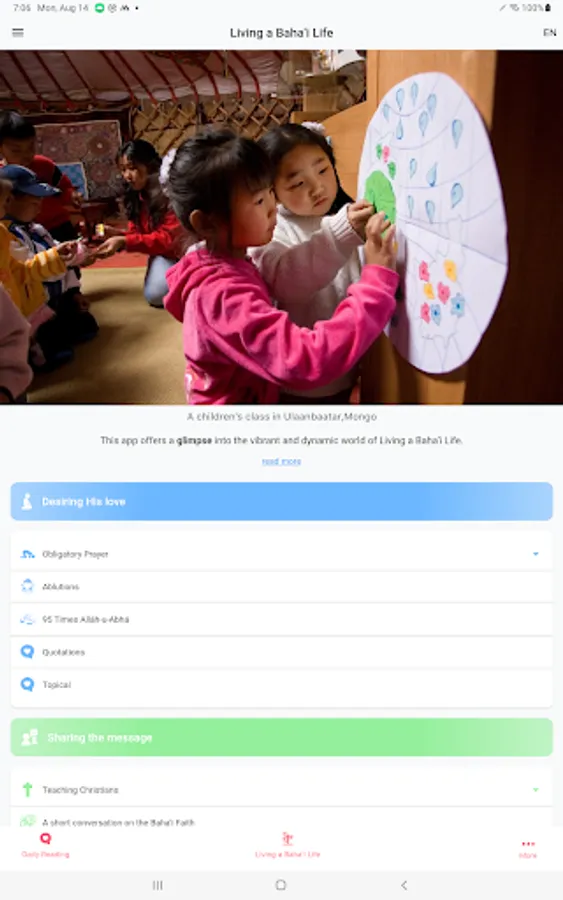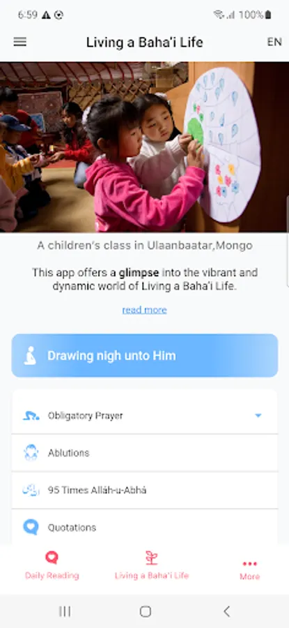“Living a Baha'i Life” goes beyond individual exploration by fostering community building and engagement. The app aims to empower you to actively participate in the vibrant tapestry of the Baha'i community.