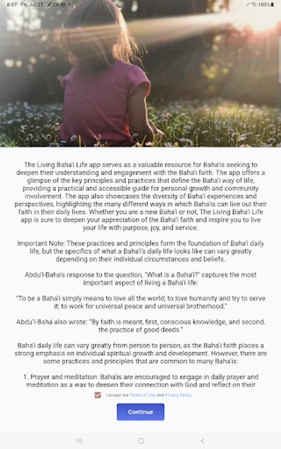 While the app provides valuable insights, it does not encompass all Baha'i texts and should not be considered as a comprehensive or prescriptive compilation on Living a Baha'i Life. It serves as a companion, offering a curated collection of materials and guidance to inspire and deepen your understanding of the Baha'i Faith. It is encouraged to explore a wide range of Baha'i sources beyond the app for a more comprehensive understanding.
