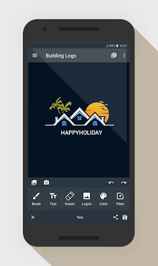 Logo Maker Pro - Logo Creator has a great collection of in-build tools that let you create professional looking logo. There are over 500+ logos available for you. You can change the color, background image, filter the images, resize, rotate and make a text for you own purposes.