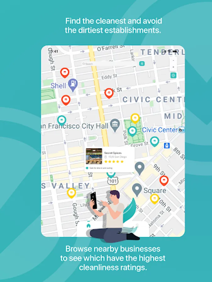 The first Establishment Cleanliness Rating App. Built to help find pristinely maintained, cleanliness-focused establishments world wide. You will be able to search and review all businesses associated with Google. Leave a Cleanliness Review every time you visit a business and let others know.