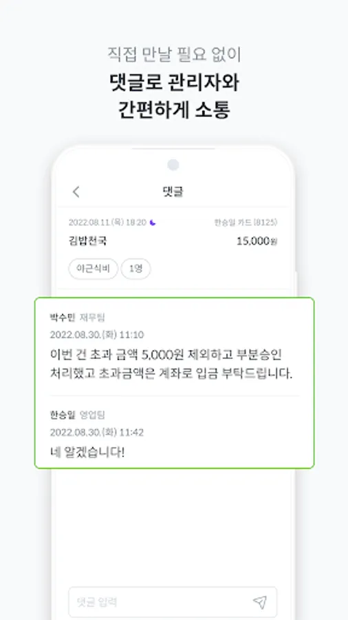 - What if I use a separate card? Communicate quickly and easily with your finance manager through comments.
