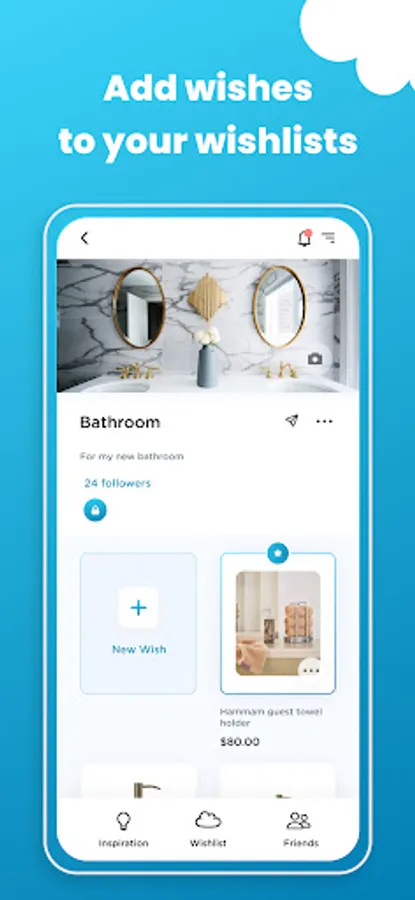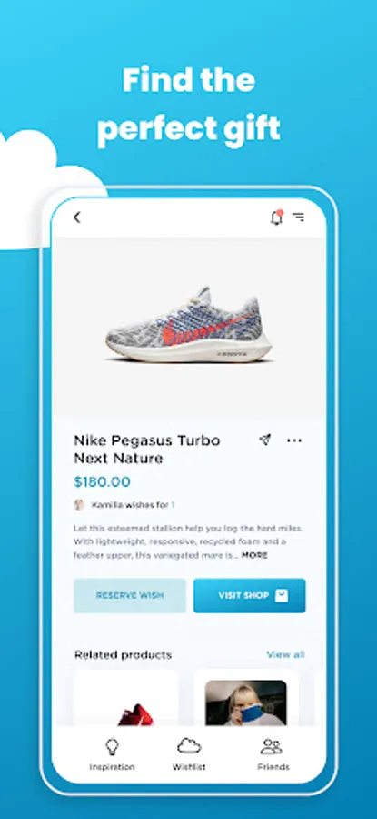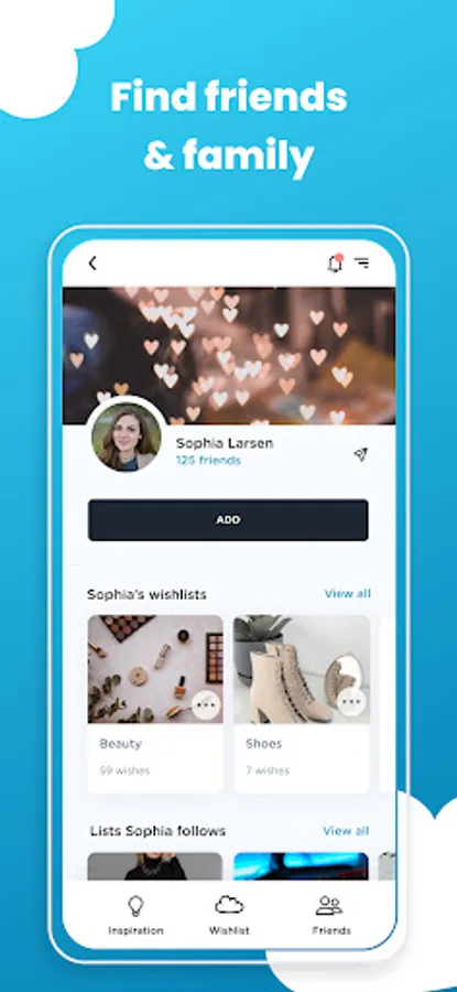 With the app, you can create your gift wishes wherever you are. You can add wishes to your wishlists from any online store in the world - there are no limitations.