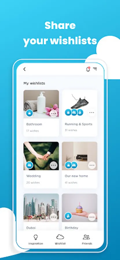 It has never been easier to share a wishlist than with the GoWish app. Share wishlists with your friends using the app, share via SMS, WhatsApp, Messenger, email, or one of your other favorite media.