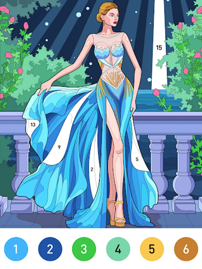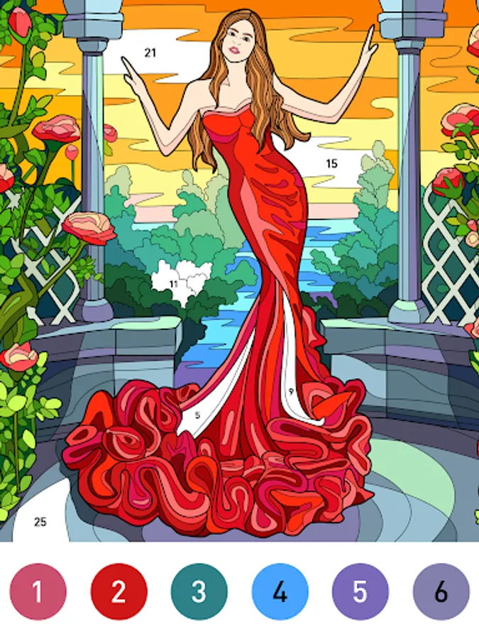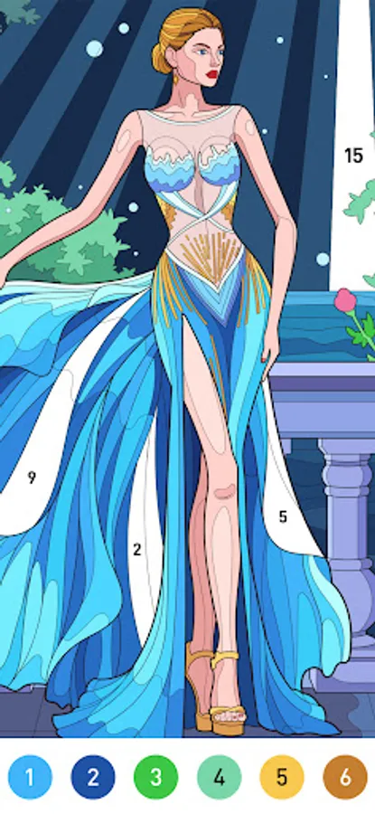 "Paint by numbers" enthusiasts and novices alike will find "Gown Color" to be a haven for self-expression. With its wide range of gown designs – from classic ball gowns to contemporary evening dresses – you'll have the opportunity to explore various color palettes and experiment with shades, letting your imagination run free.