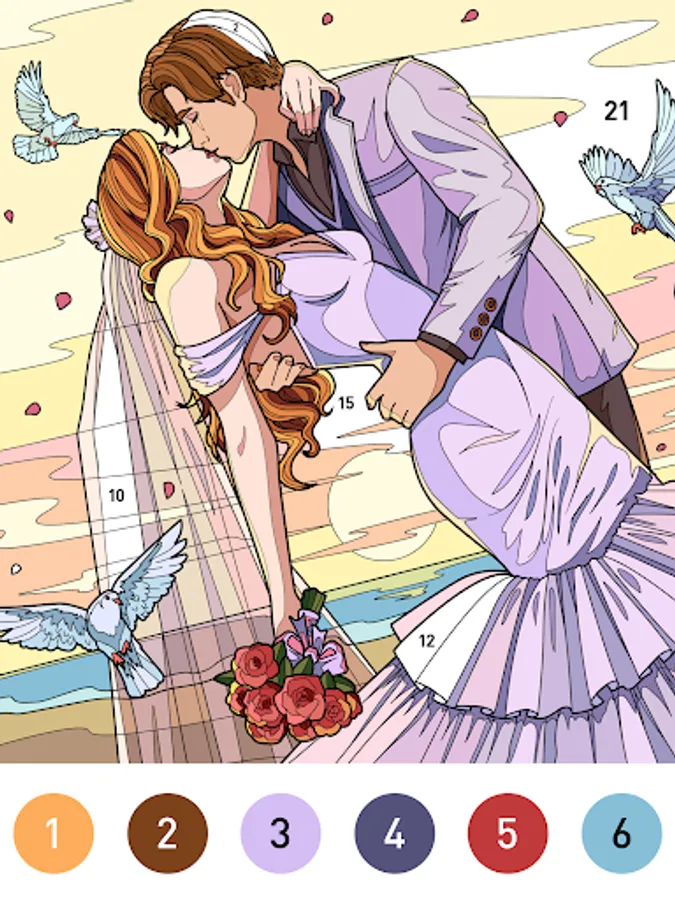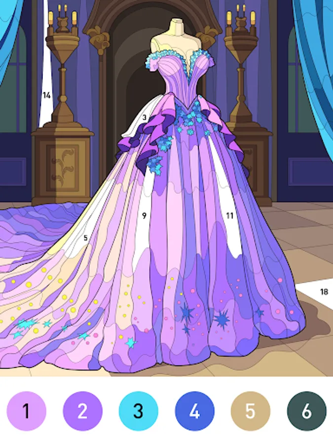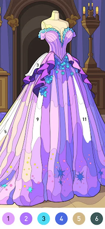 Experience the joy of painting by numbers as you watch your chosen gown designs bloom into colorful masterpieces. Each stroke is a step toward transforming a mere outline into a vivacious creation. The fusion of fashion and art in "Gown Color" allows you to appreciate the intricate details of garments while honing your coloring skills.