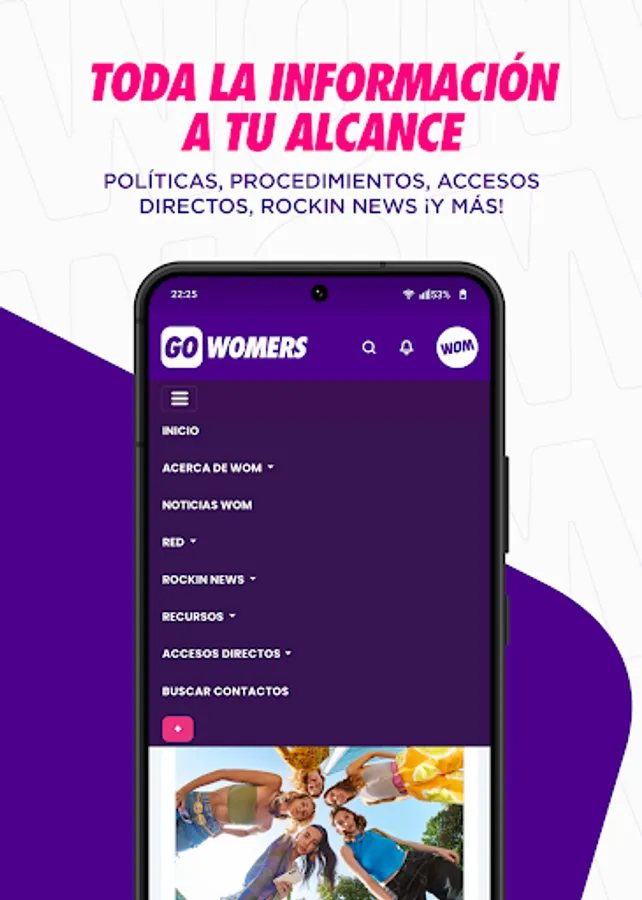 Application to see the mobile version of the Intranet Go WOMers. The free platform allows all Company employees to quickly and securely access their benefits and agreements, news, photos, videos and much more.