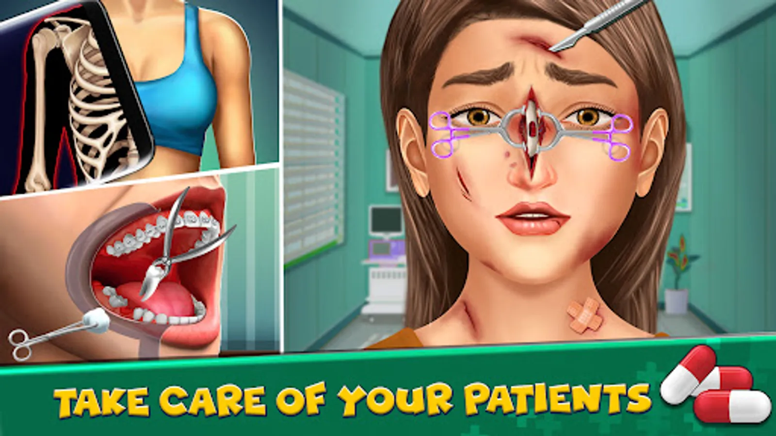 The dental clinic is a newly introduced department of surgery listed in the doctor games. You’ll treat dental patients and pretend to be a real dentist doctor in the dental surgeon hospital games. Place braces in city hospital games to make the princess look better for the upcoming beauty contest. Perform teeth cleaning, remove yellow spots and fill holes to proceed in offline hospital games. You'll use a medical drill and other doctor tools in trainee surgeon new games.