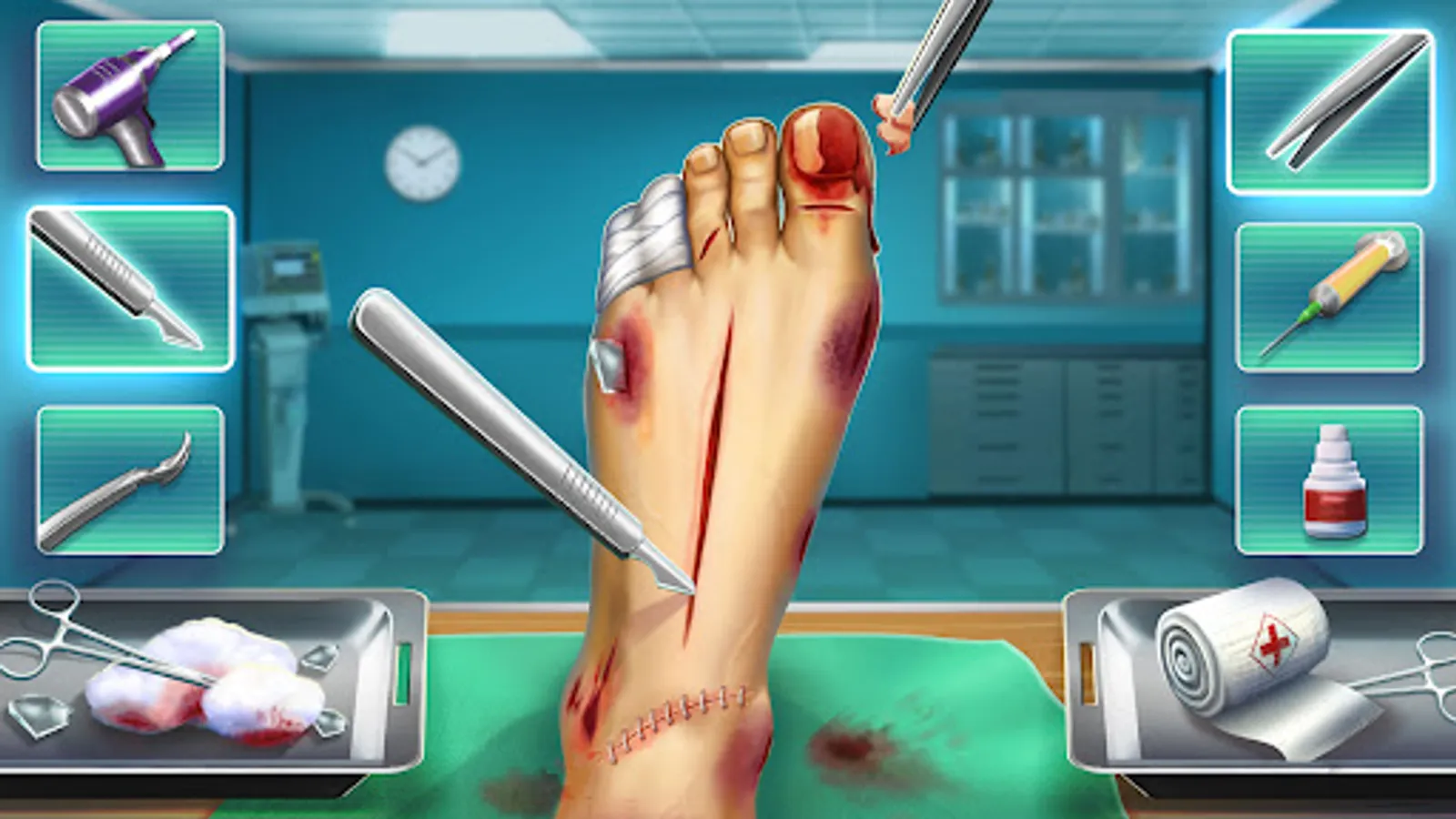 In the orthopedic department of this city hospital games, foot and bones care clinic operations are performed in the multi-surgery doctor games levels. Treat broken bones and operate patients in ortho clinic hospital games using surgery simulator & tools. Provide all the needful to baby doctors like hospital chair and other items in doctor office. Perform like a real emergency doctor for emergency patients and operate carefully to get them relief from their pain in doctor games to save life. Moreover, also take part in foot surgery to be taken out in foot clinic. Give anesthesia by giving an injection wherever needed & go for further cuts.