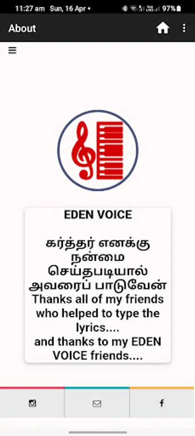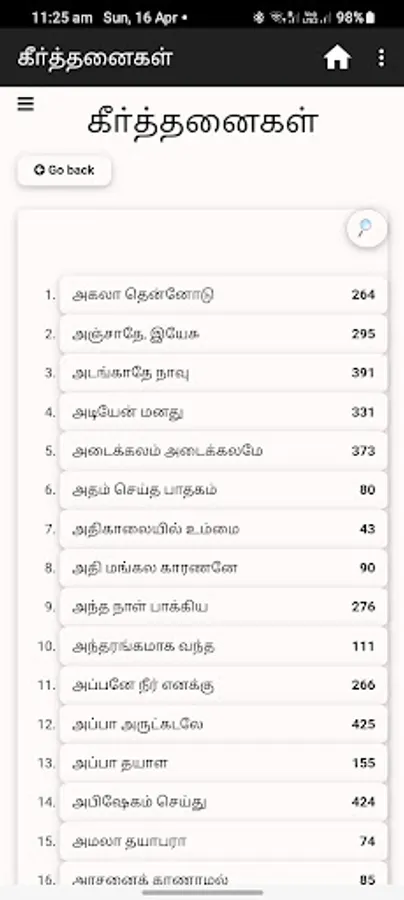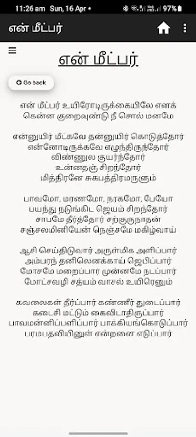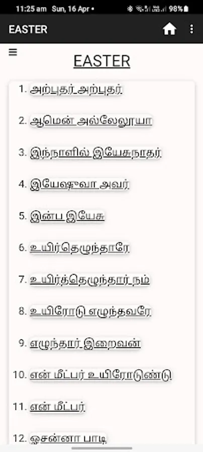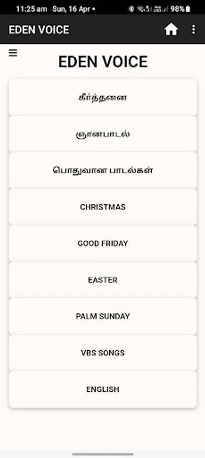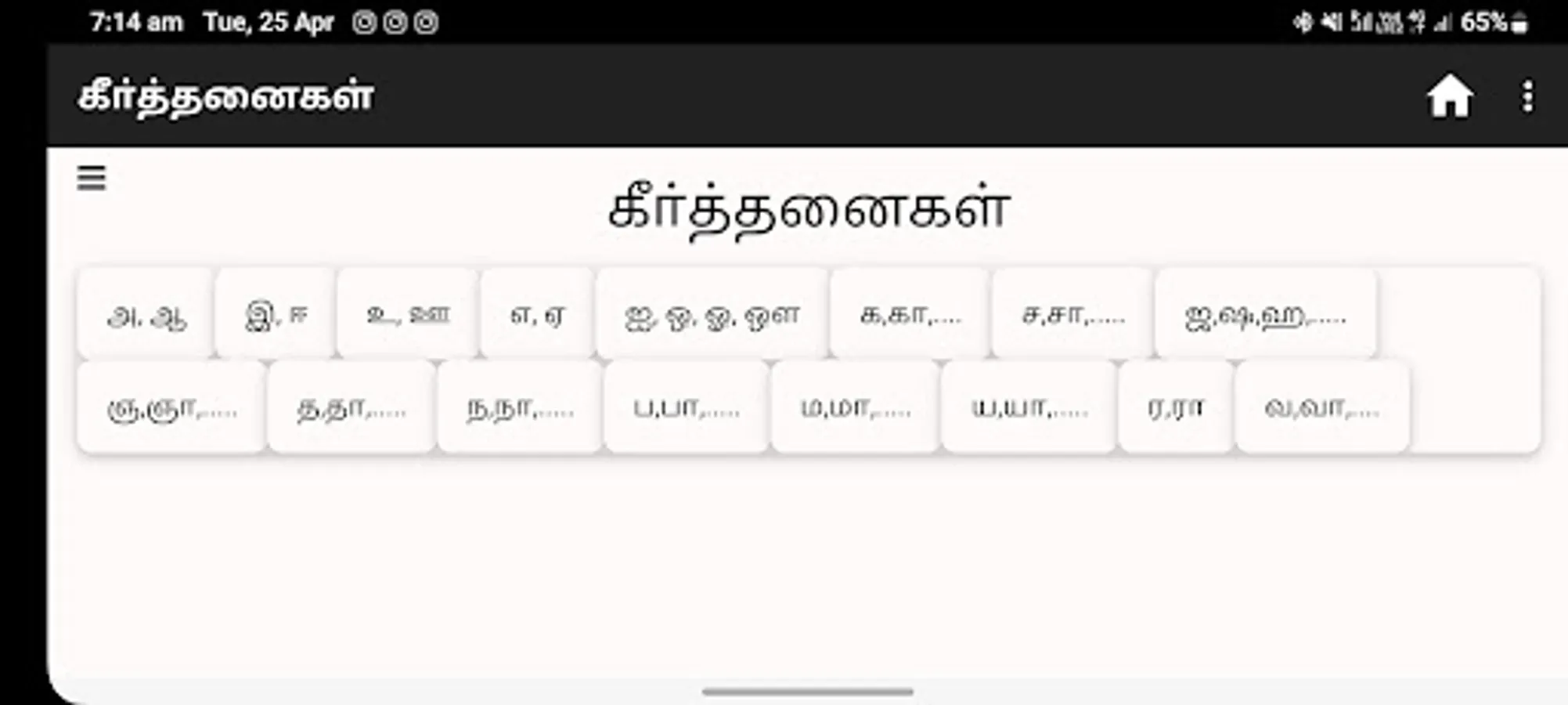 The app is under development now available sections are "Keerthanai, Gnanapadal,