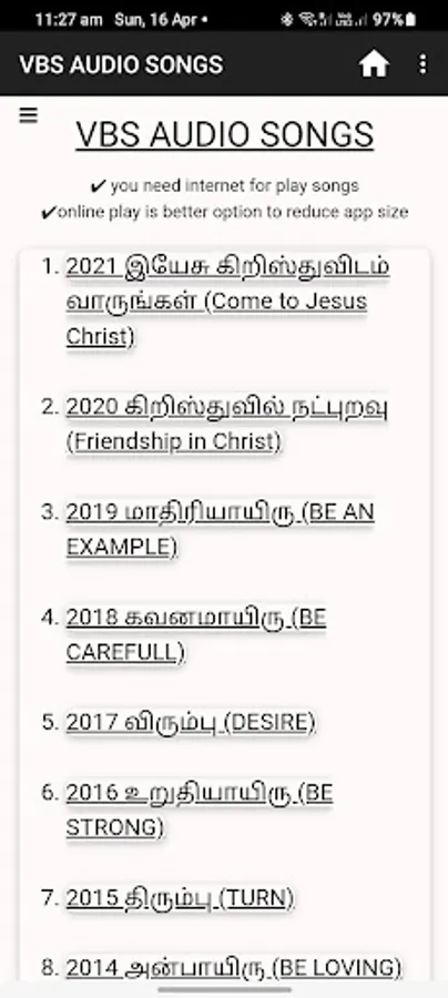 This app consist of kanyakumari based CSI Diocese VBS songs.