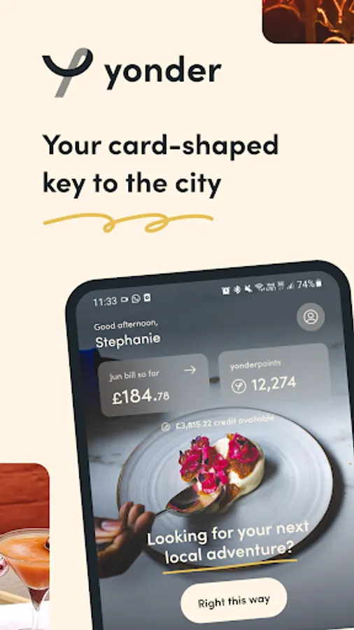 We've rebuilt credit card rewards from the ground up. Introducing Local Experiences, the best dining, active and social experiences in your city available right in the Yonder app and redeemable with your Yonder points. We're starting in London and rolling out to other UK cities soon. Enjoy fully paid meals at London's best restaurants like Kricket, tickets to Secret Cinema and access to intimate gigs.