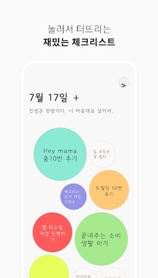 Like a watermelon game, it is a to-do list app where various circles gather to record what needs to be done today!