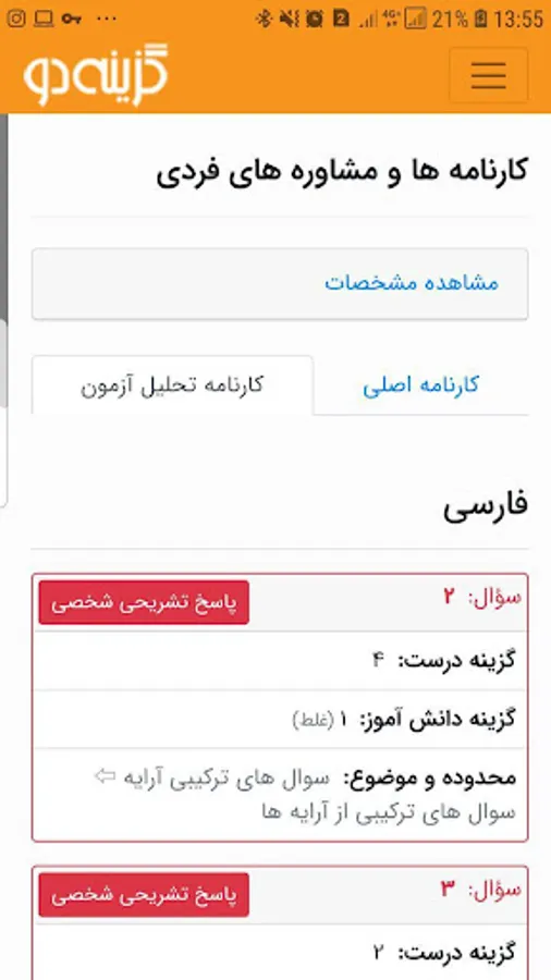 اپلیکیشن بانک سؤال هوشمند گزینه دو ویژه دانش آموزان دوره اول و دوم متوسطه و داوطلبان کنکور گزینه دو ارائه شده است.