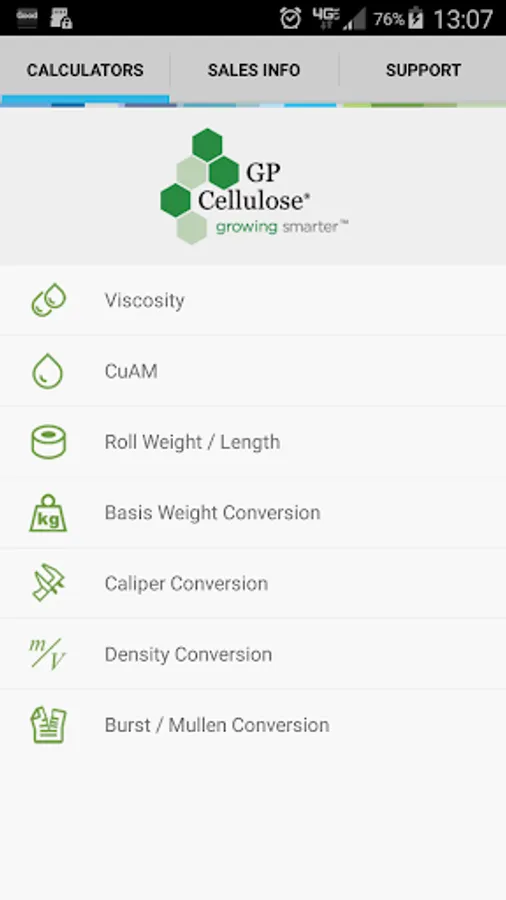 The GP Cellulose Calculator app allows you to quickly convert values for basis weight, caliper, density, and burst / Mullen and also calculate various properties of our product including viscosity, roll weight / length, and air dry percentage. The app also includes a TAPPI roll identification chart for easy accessibility.