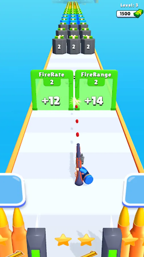 Simple gameplay. Upgrade the guns, avoid barriers, and finish your run in this gun craft: run race 3D game!