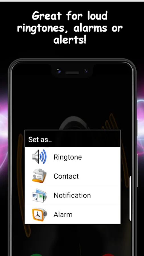 Easily set your default ringtone, your alarm, your notification sound, or the ringtone for a specific contact.