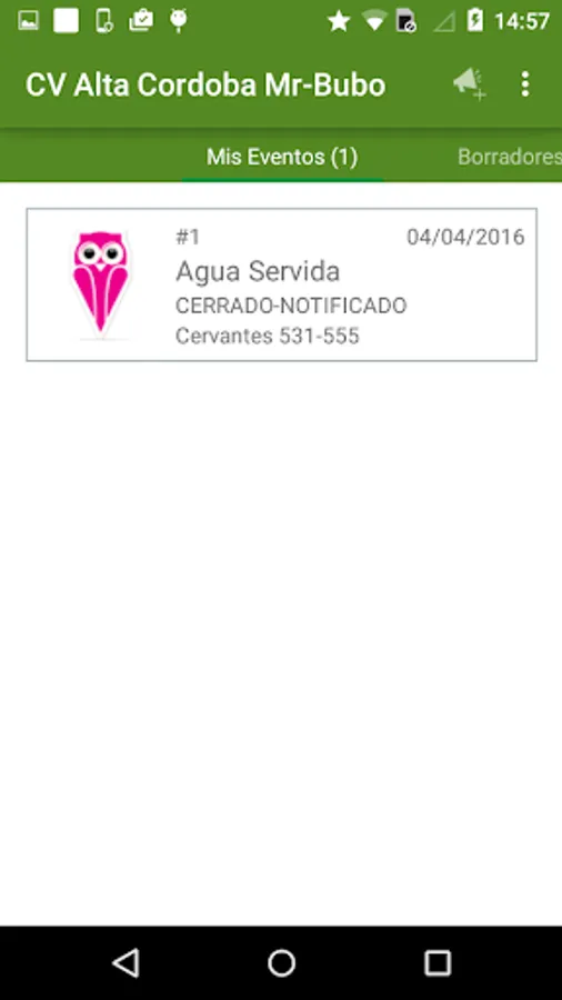 Mr-Bubo is a collaborative application that allows you to report on different types of events Neighborhood Center High Córdoba. When reporting an event, you can attach images or videos and indicate the exact location of it thanks to the GPS device. You can check online what state is the reported problem and once it is resolved you have the opportunity to indicate how comfortable you feel with the offered solution.