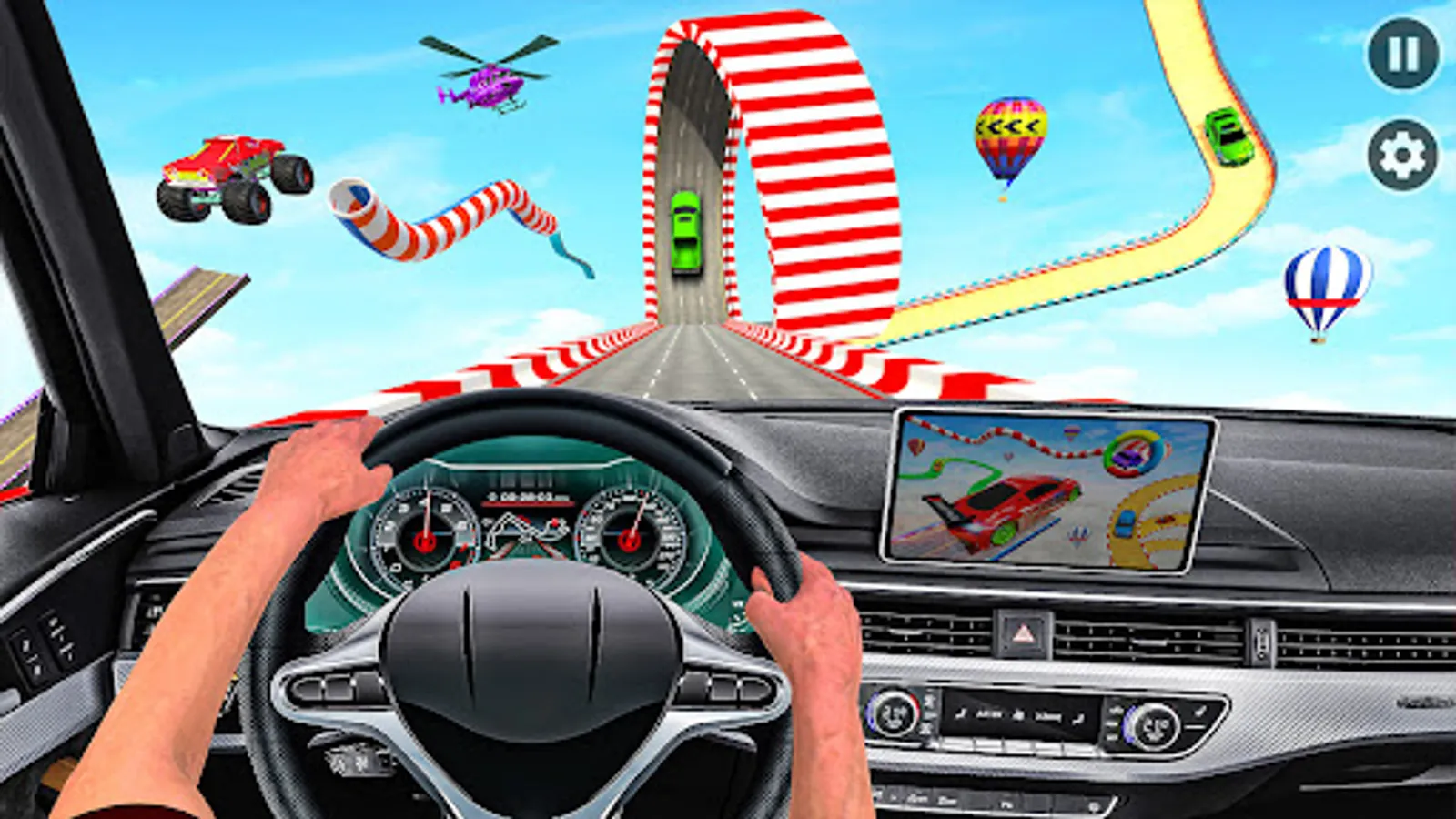 Download the game " Mega Ramps Stunt Car Games 3D" now with super hero stunt driving games.