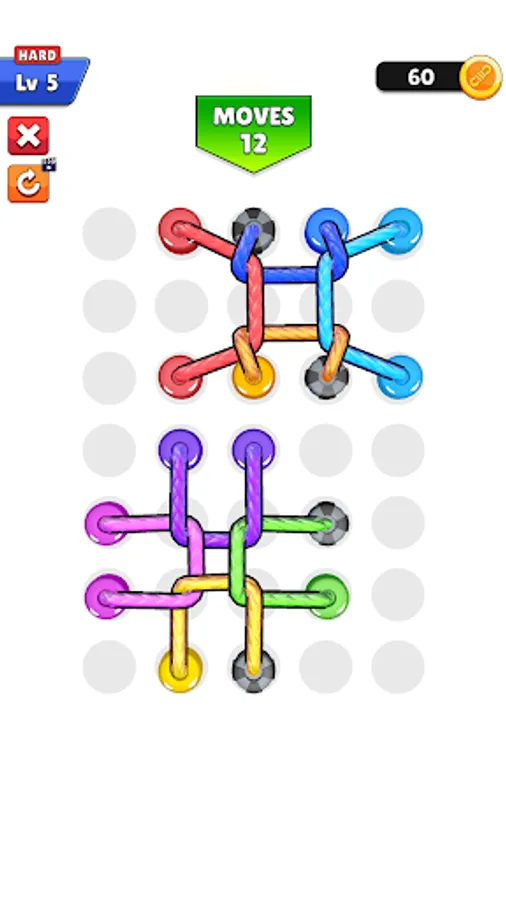 Dive into a world of colorful ropes and challenging puzzles as you embark on a journey to untangle the most intricate knots. Are you up for the challenge? Become a tangle master of sorting games, where you need to solve the rope puzzle of knots 3D in an untangle rope game.