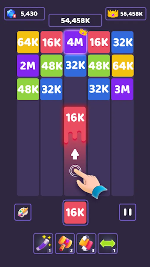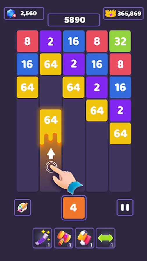 Various types of superpowers - Magic wand that will clear all the same number that you will select, undo tool and hammer tools to block smasher the number blocks you can use when there are no numbers are merging.