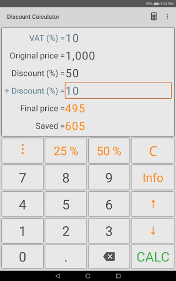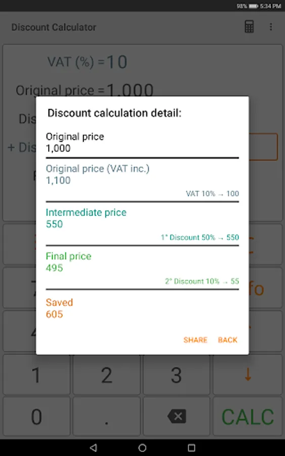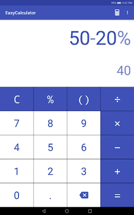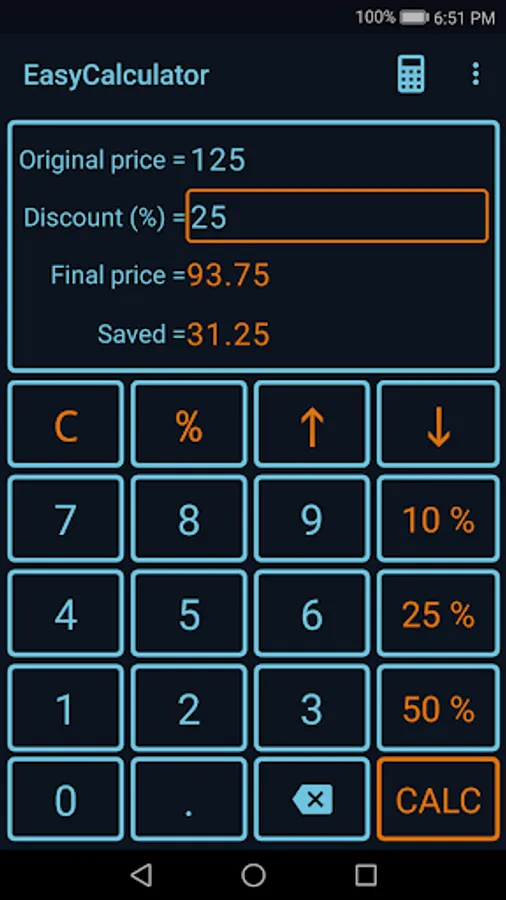 - Memory available: Easy Calculator saves your calculations. In addition, it is possible to share or use them during the input.
