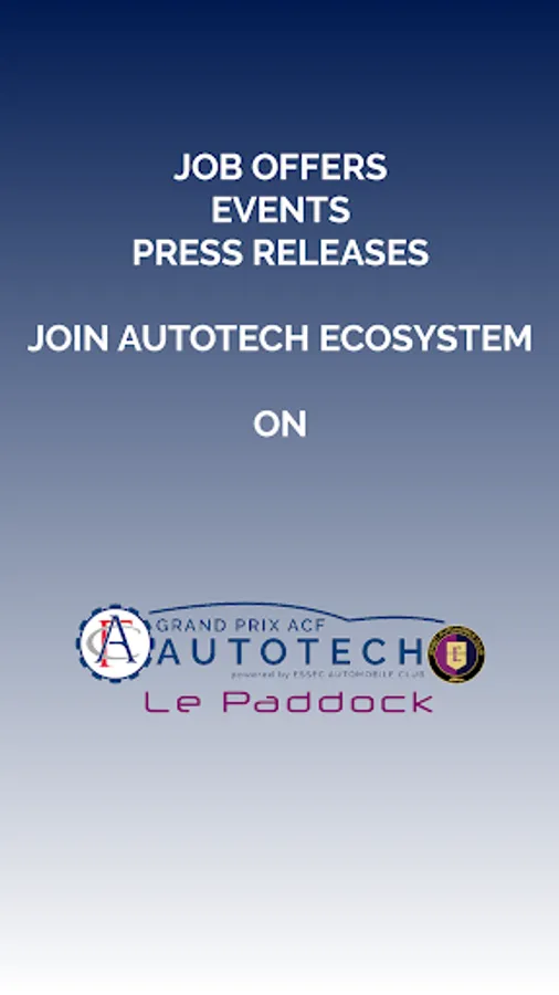 Student, you look for an internship ? yound or not young active professionnals, you look for a dynamic company? Entrepreneur looking for partner? Startup looking for futur tech stars? Le Paddock will be the tool focused on AutoTech job offers from startups and partners from Grand Prix ACF.