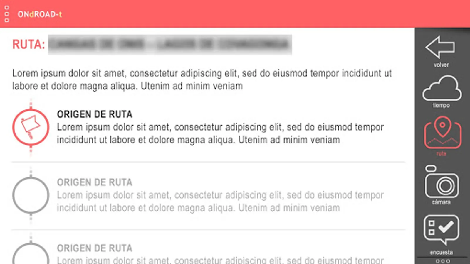 ONdROAD-T will inform you of everything that happens around you in the course of your tourist route, it will extend practical information during the journey and in the destination, and will allow you to save the unique moments that you live along it.