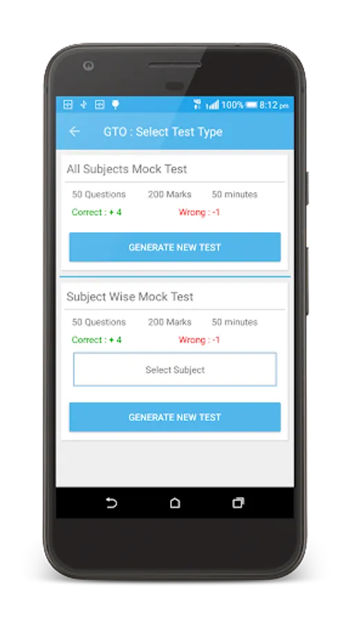 - Various tests types like ‘ALL Subjects’ and ‘Subject Wise’ tests.