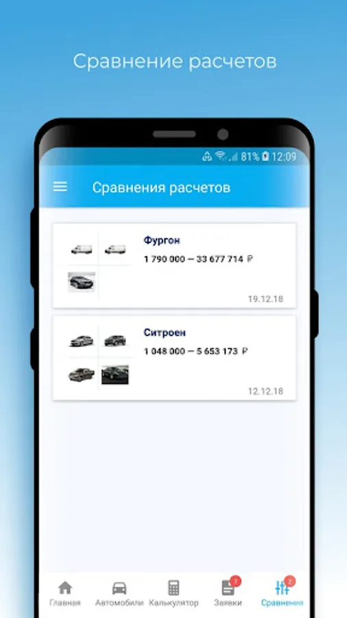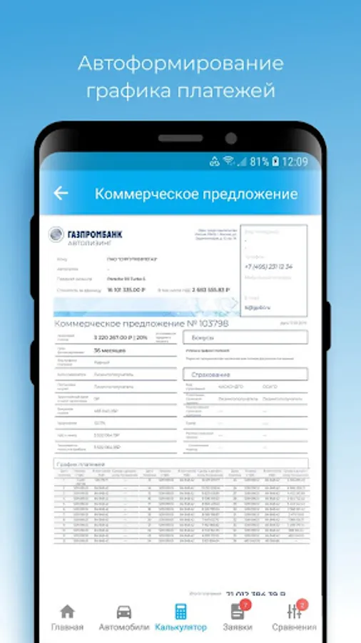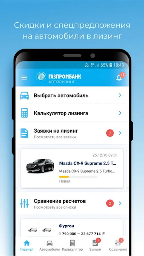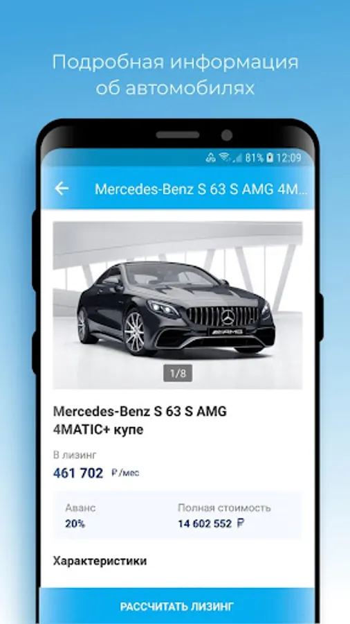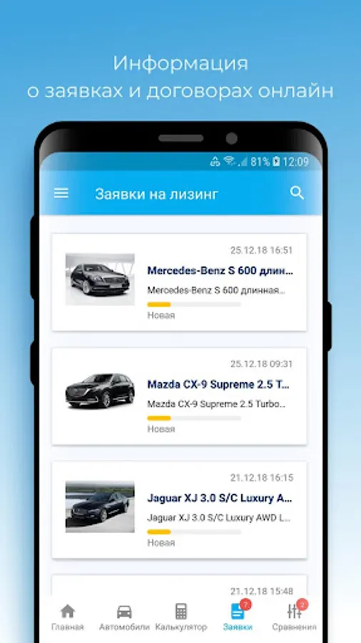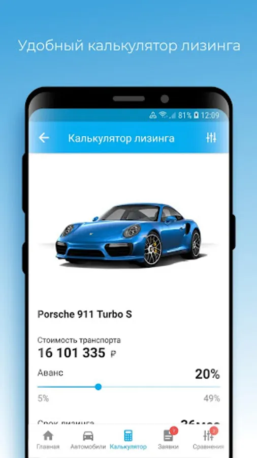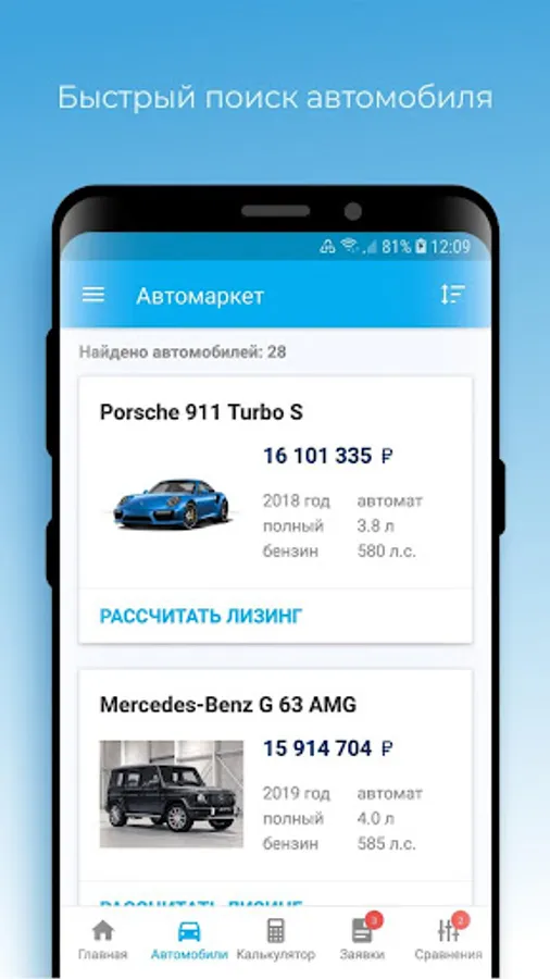 A quick search of vehicles for leasing, comparative calculations of leasing, order processing online - all in one application.