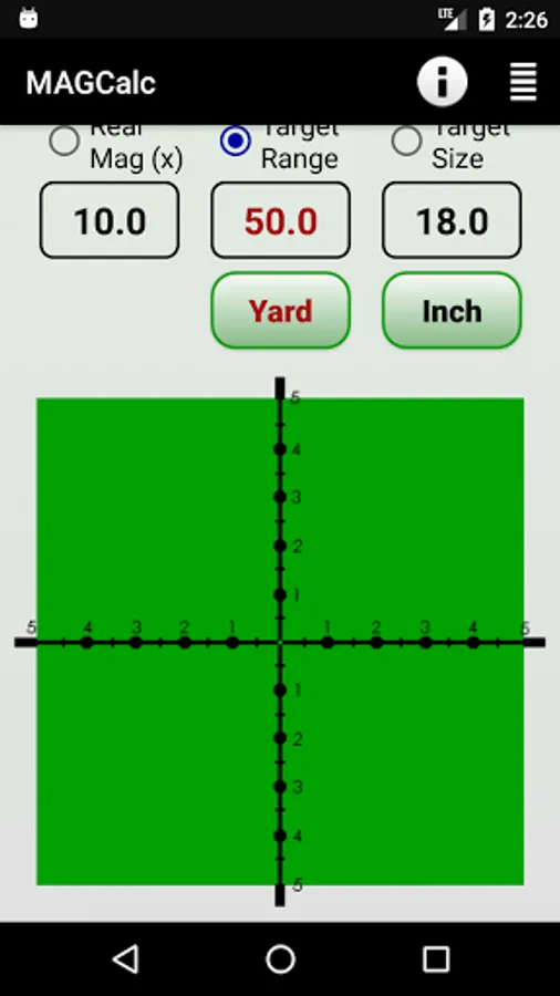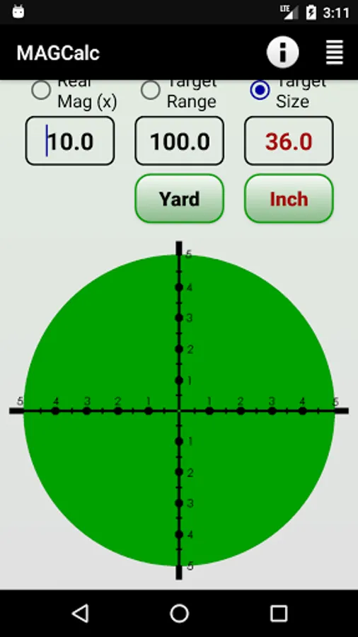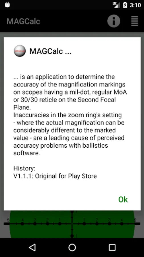 MAGCalc is an application to determine the accuracy of the magnification markings on scopes having a mil-dot, regular MoA or 30/30 reticle on the Second Focal Plane.
