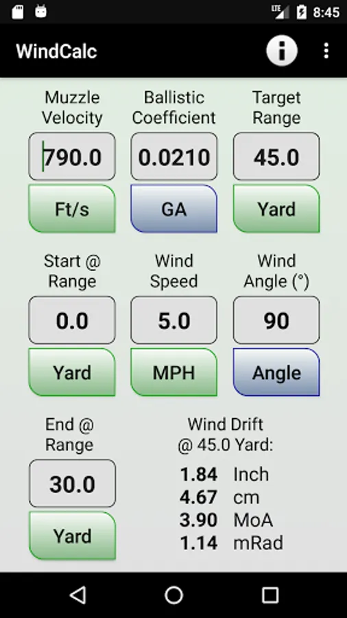 A simple calculator to estimate lateral wind-drift at a target range given the muzzle velocity, Ballistic Coefficient (and drag law) of the projectile together with the absolute wind speed and direction relative to the direction of the target.