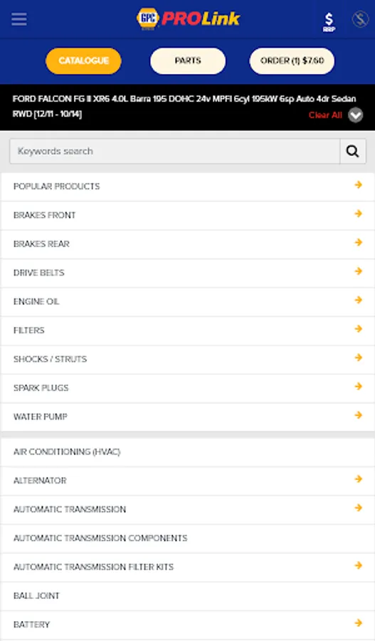 With Vin & Rego search, live inventory and pricing from your local stores as well as full access to the complete product catalogue, PROLink Mobile makes it even easier to look up and order the parts you need for more than 16,000 different vehicles.