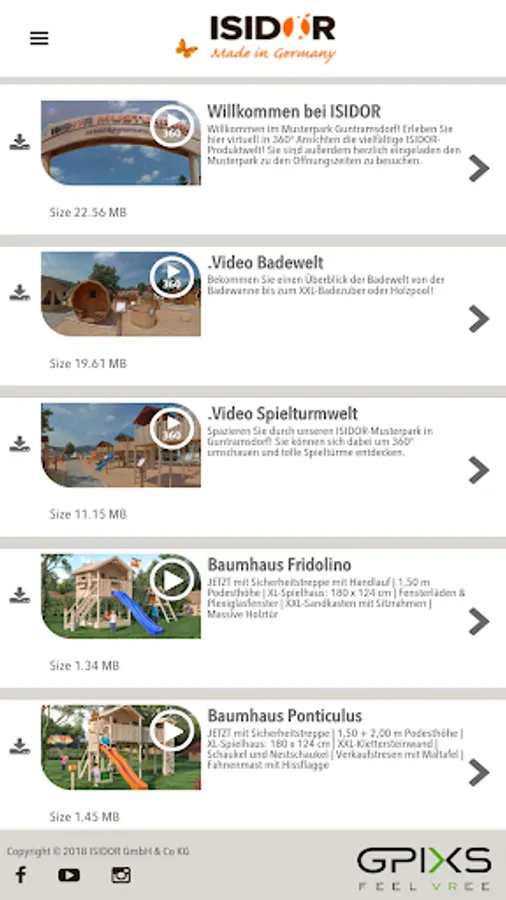 Come along and experience ISIDOR wood products first hand! We love the material wood because it stands for stability, warmth and sustainability. The nature and the garden is our extended living space, which we shape with play towers and tree houses, garden saunas and Grillkota. Go on an expedition now! With our interactive 360 panoramic videos and 3D scans you stop anywhere and zoom in on the details. Take a rest in the sauna or kota. Use VR glasses and visit the virtual ISIDOR world. We wish you a lot of fun!