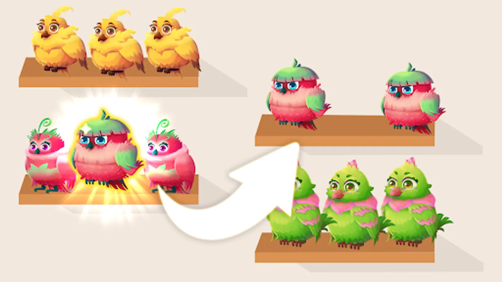 Tap the same three birds