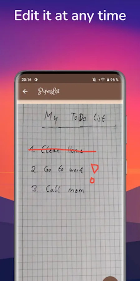That's over now. With Paper List you can easily scan your paper notes and view and edit them at any time.